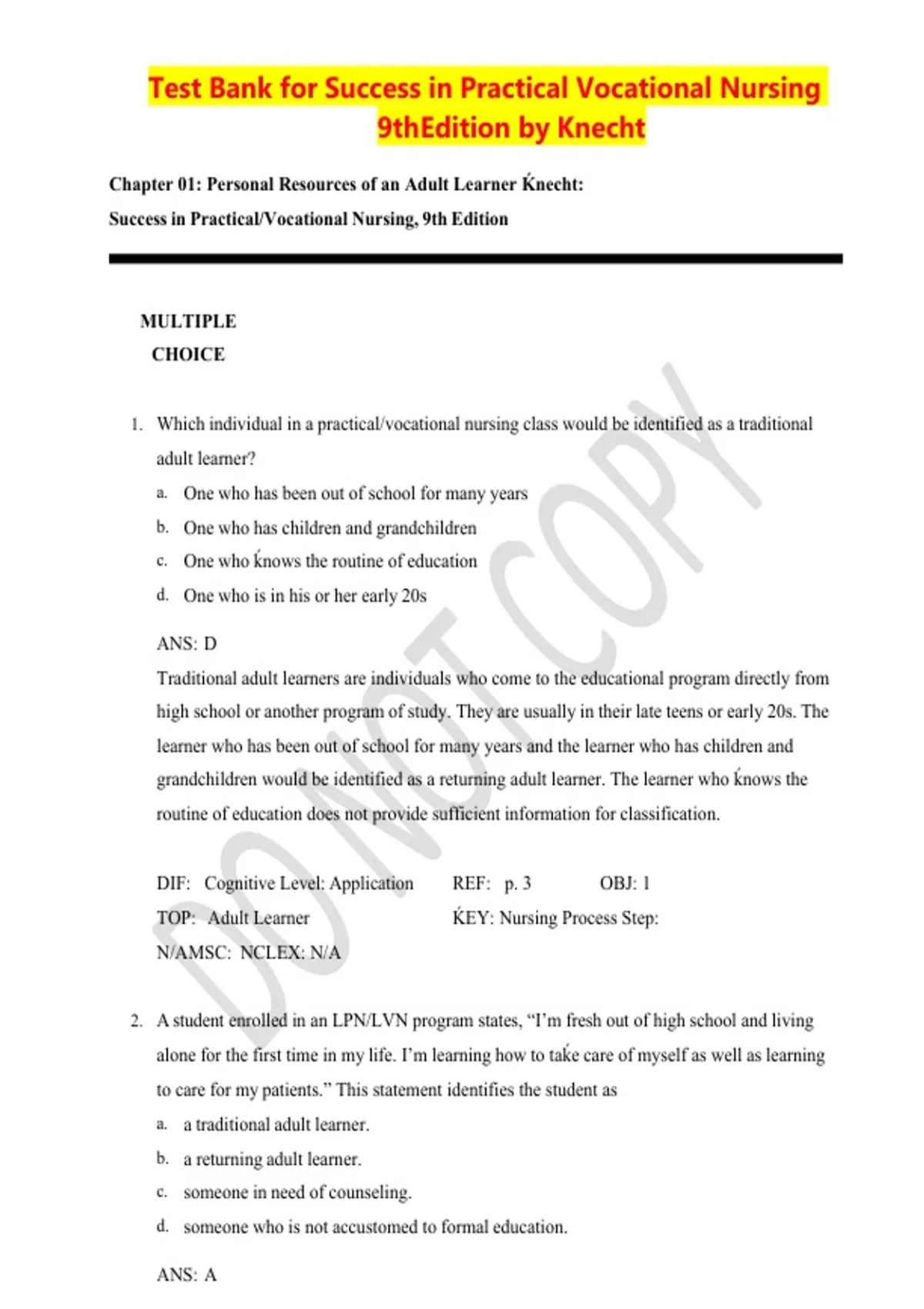 1. Which individual in a practical/vocational nursing class would be identified as a traditional