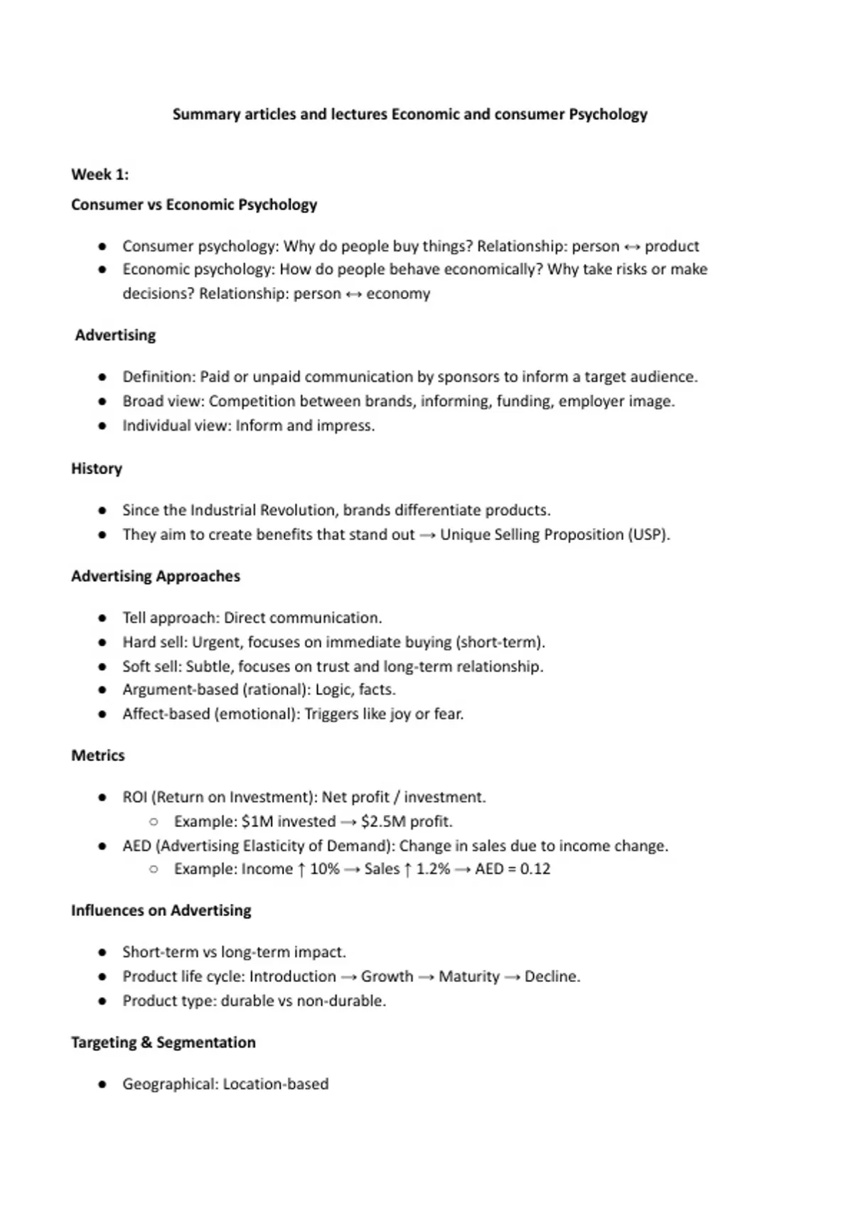 Summary articles and lectures Economic and consumer Psychology