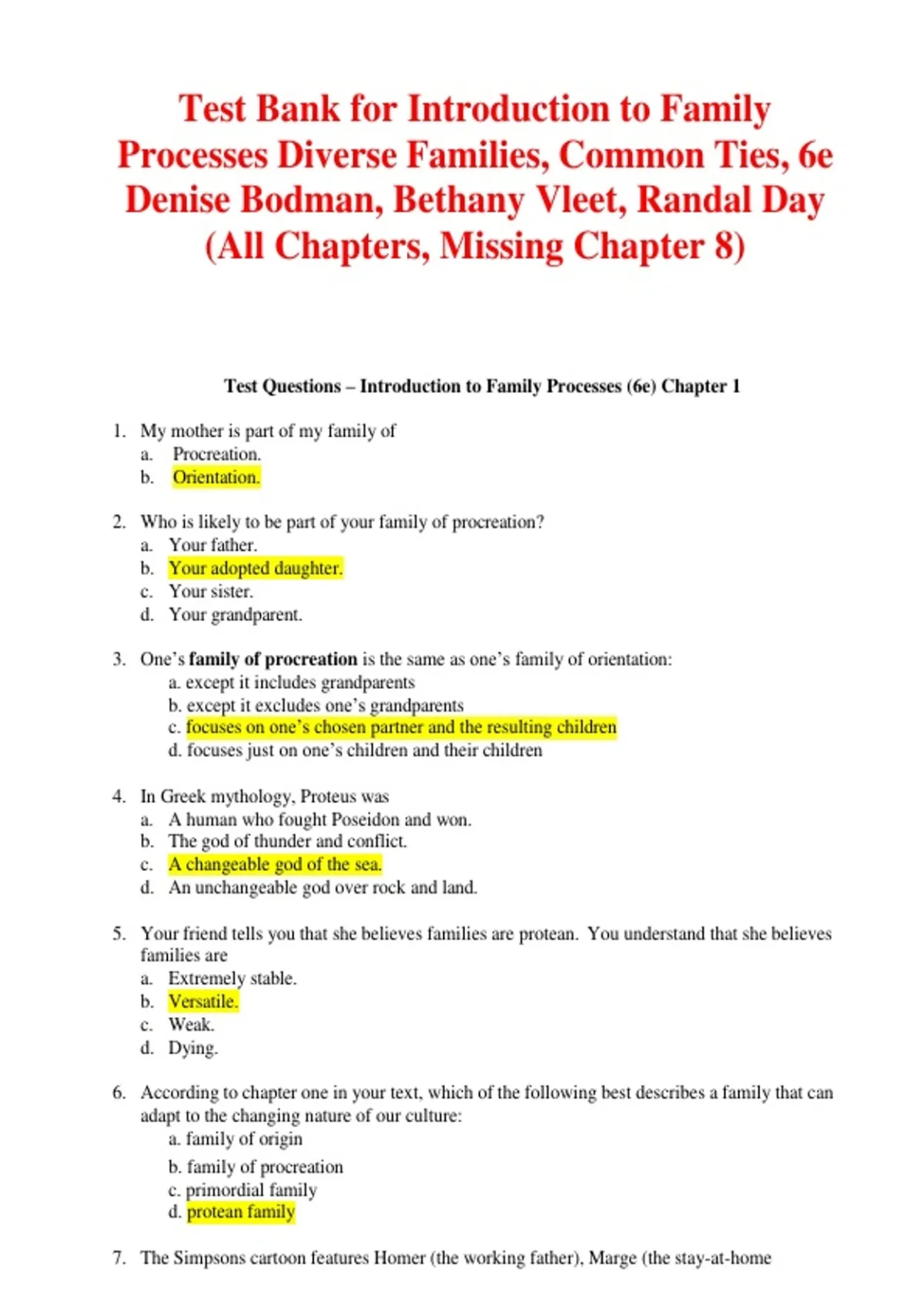 Test Questions – Introduction to Family Processes (6e) Chapter 1