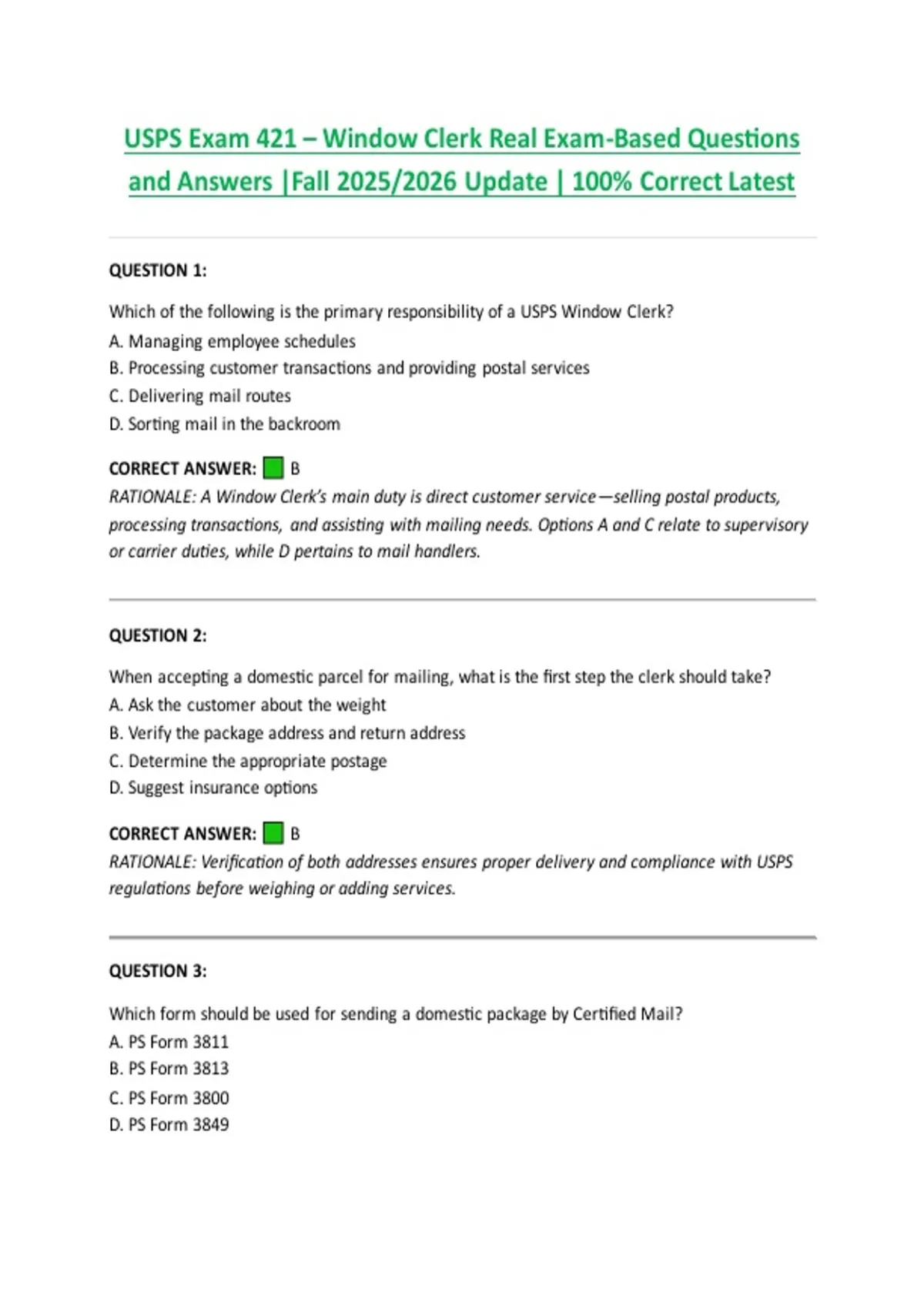 RATIONALE: A Window Clerk’s main duty is direct customer service—selling postal products,