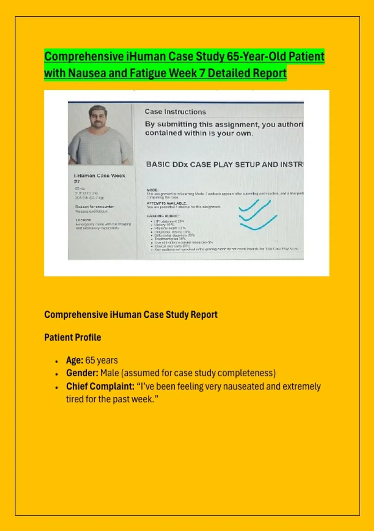 Comprehensive iHuman Case Study 65-Year-Old Patient with Nausea and Fatigue Week 7 Detailed Report