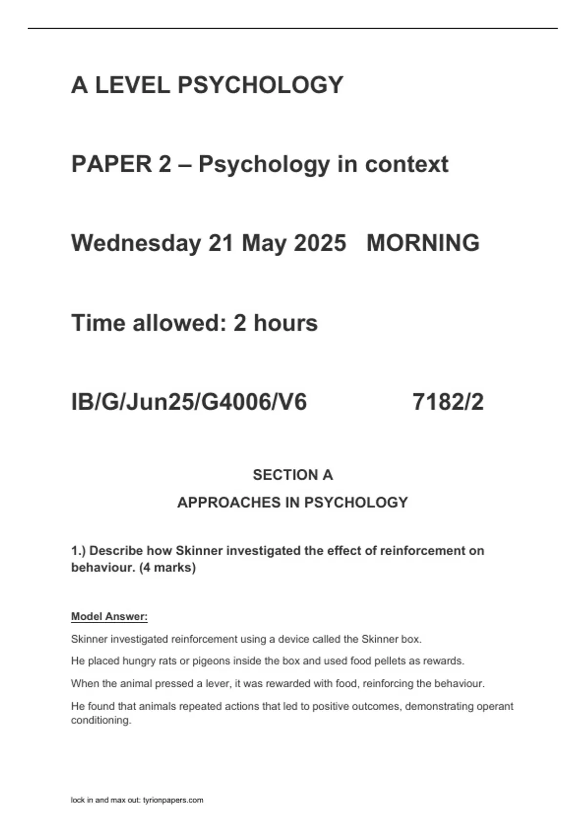 AQA A LEVEL MAY JUNE 2025 PSYCHOLOGY PAPER 2 DOCUMENT