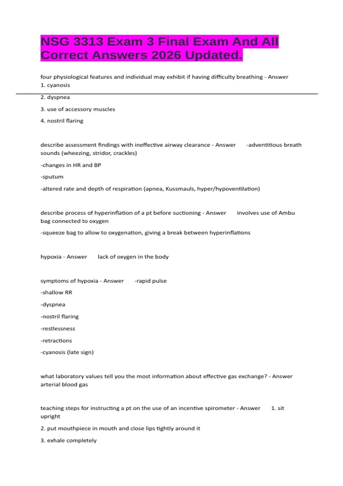 NSG 3313 Exam 3 Final Exam And All Correct Answers 2026 Updated.