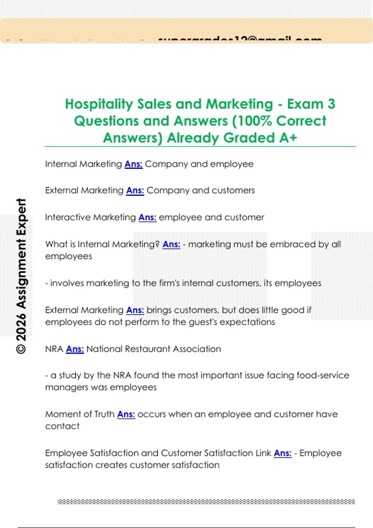 Hospitality Sales and Marketing - Exam 3