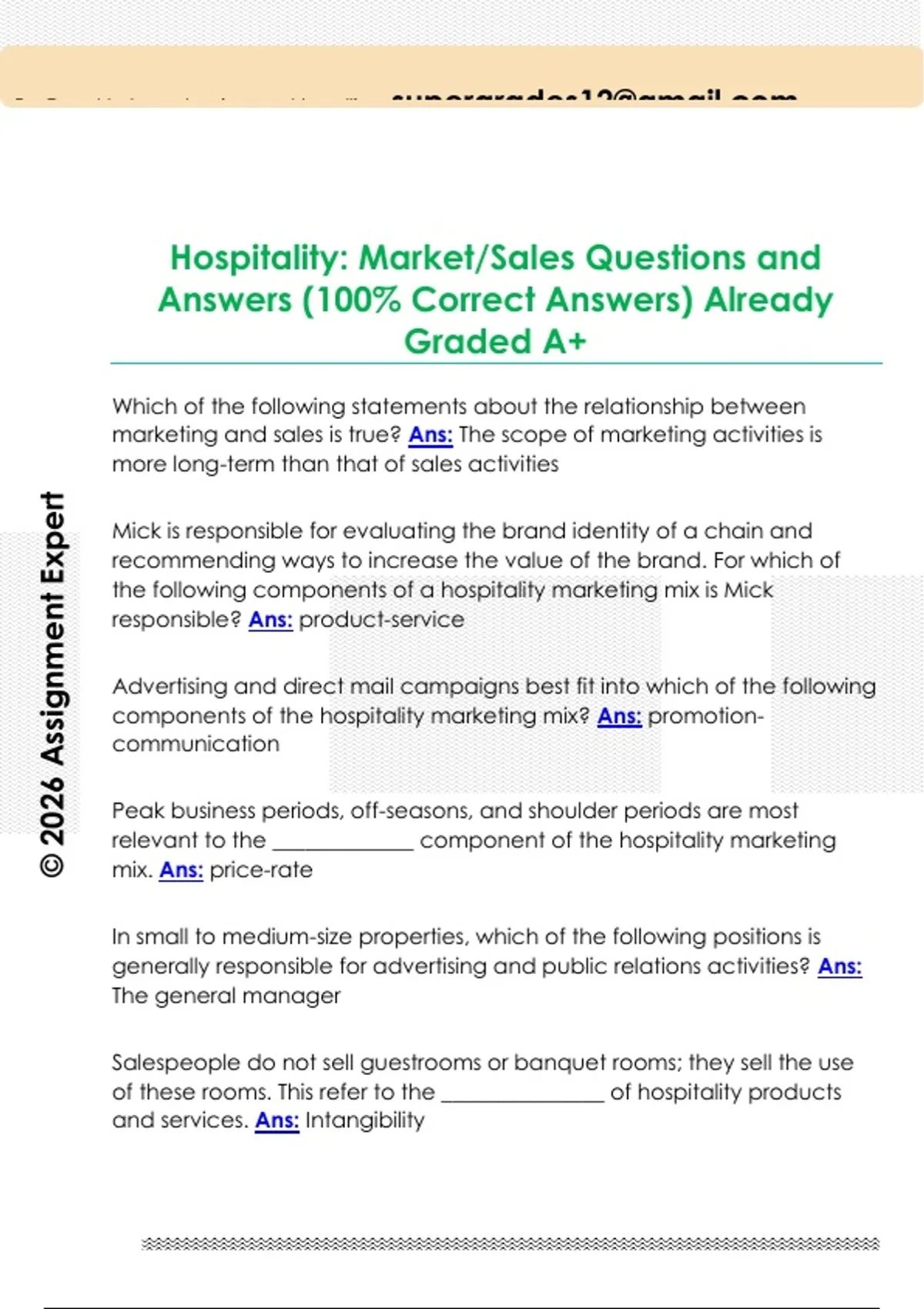 Hospitality: Market/Sales Questions and