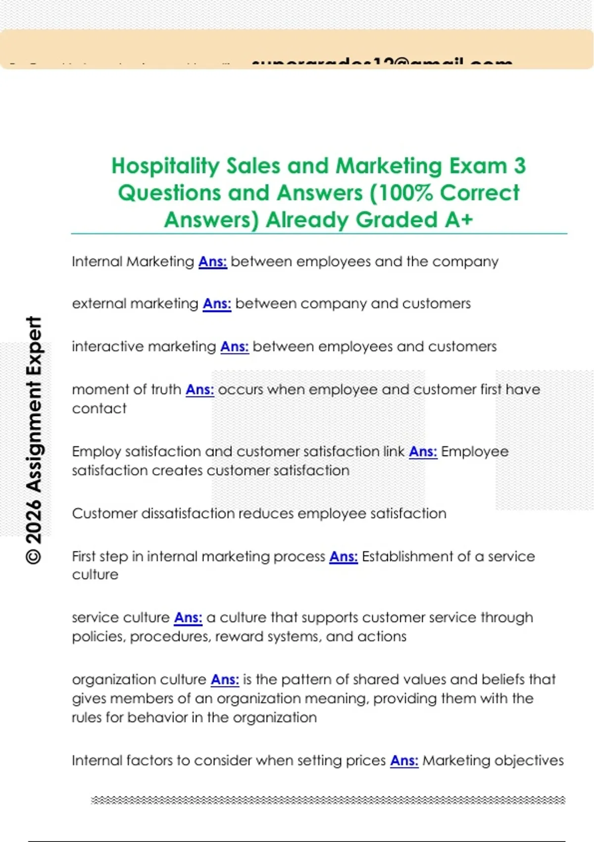 Hospitality Sales and Marketing Exam 3 Questions and Answers (100% Correct Answers) Already Graded A+