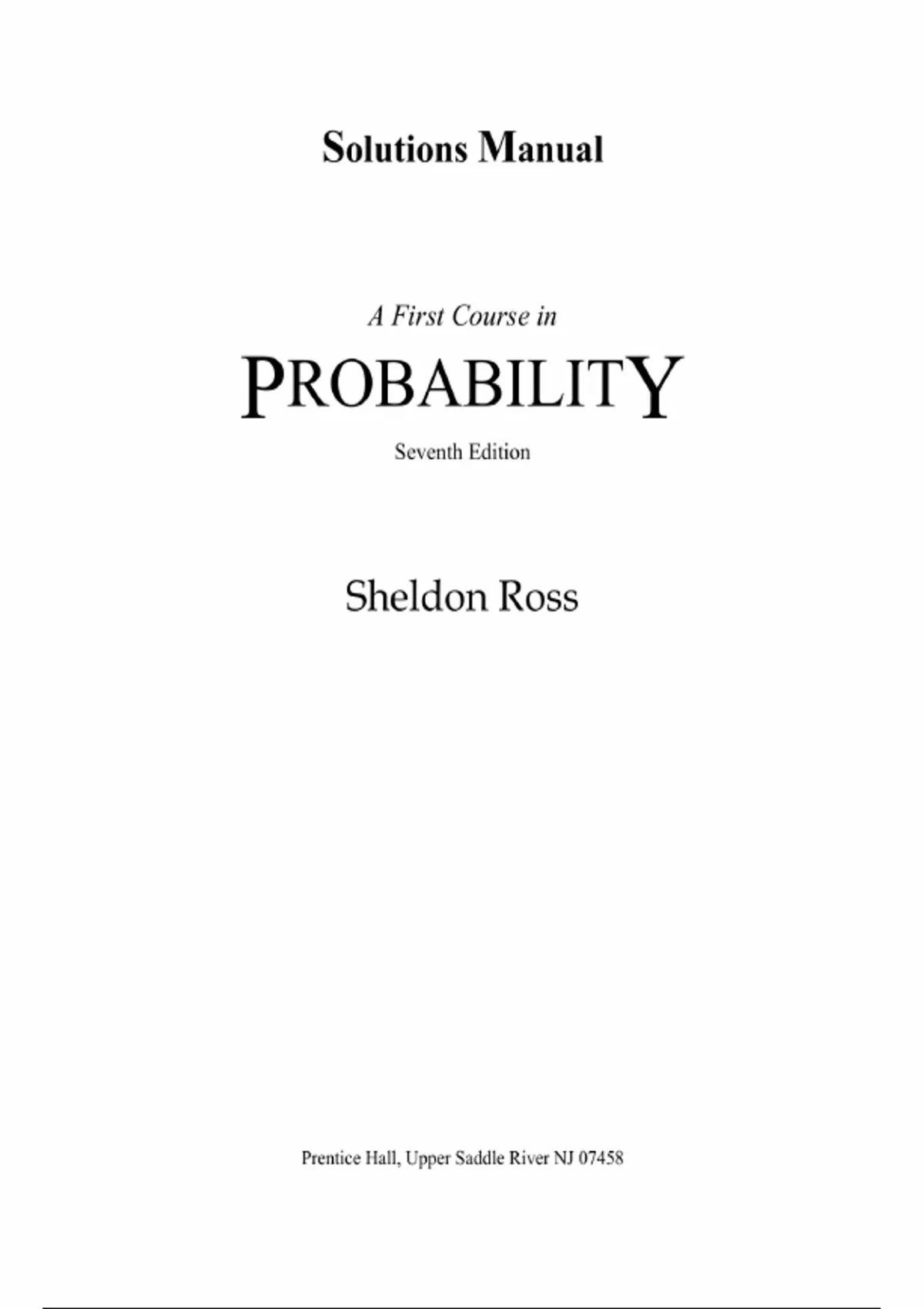 A First Course in Probability – 7th Edition by Sheldon M. Ross | Complete Solutions Manual (Chapters 1–10)