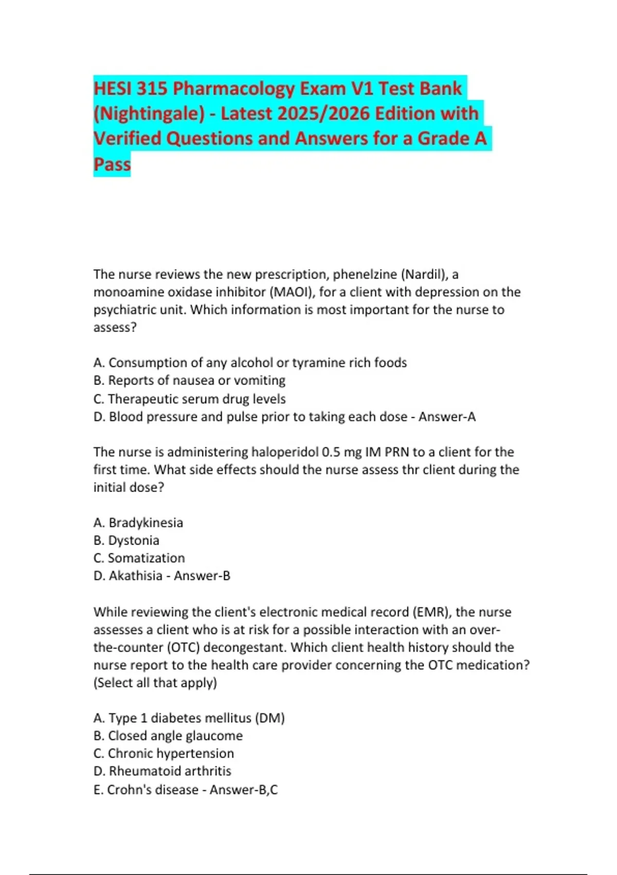 Verified Questions and Answers for a Grade A