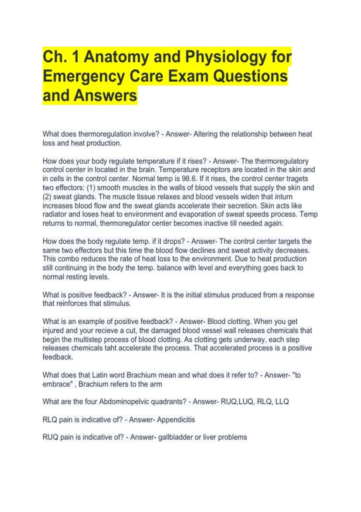 Emergency Care Exam Questions