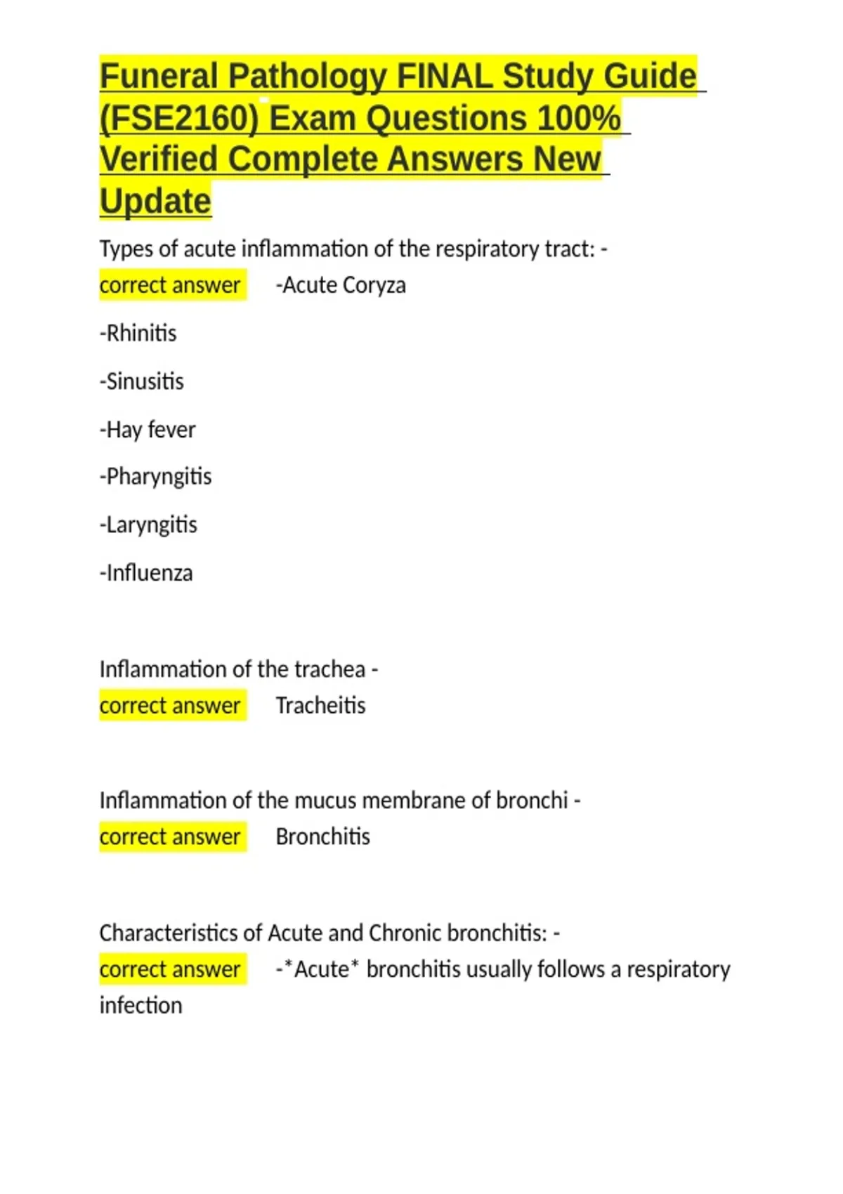 Funeral Pathology FINAL Study Guide (FSE2160) Exam Questions 100- Verified Complete Answers New Update.docx