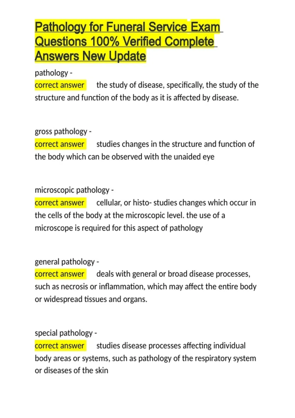 Pathology for Funeral Service Exam Questions 100- Verified Complete Answers New Update.docx