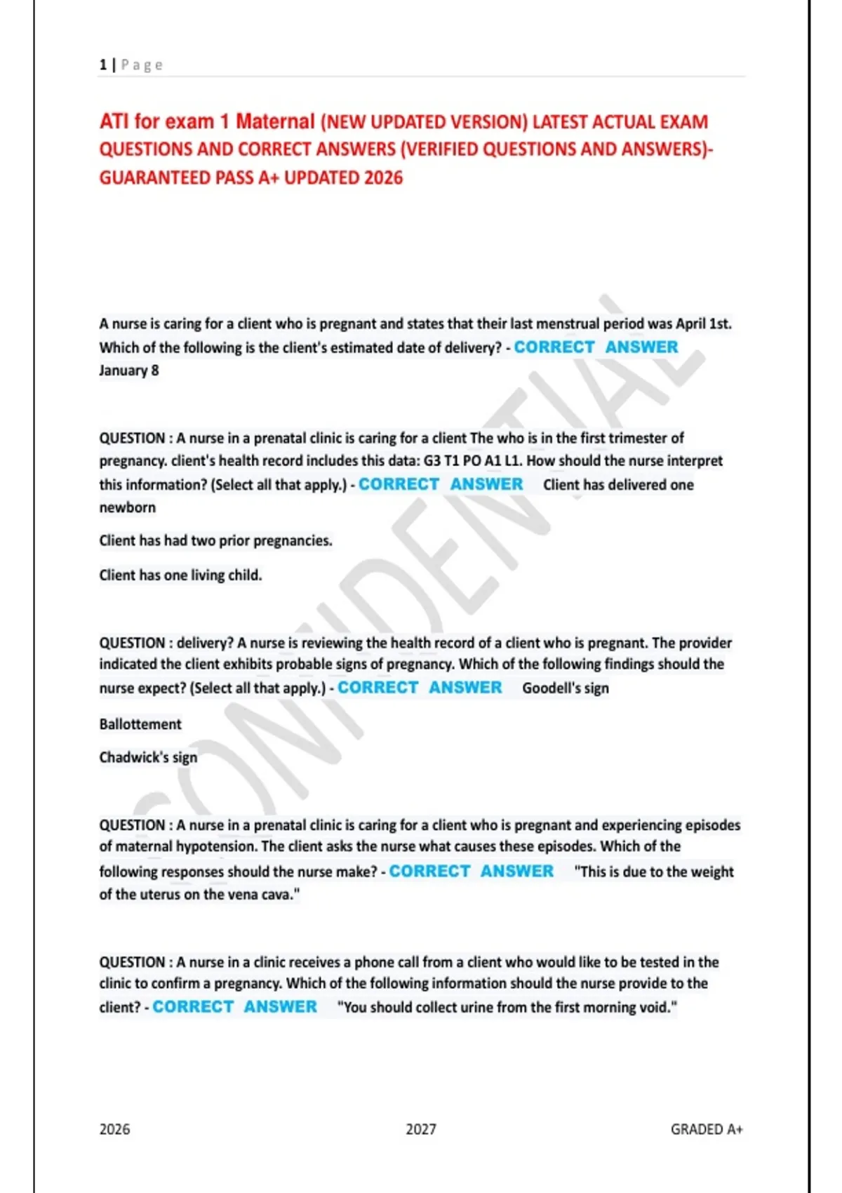 ATI for exam 1 Maternal (NEW UPDATED VERSION) LATEST ACTUAL EXAM
