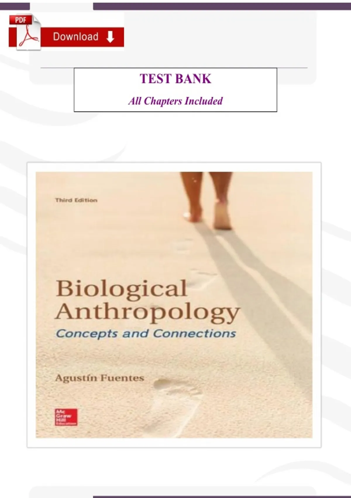 The Biological Anthropology: Concepts and Connections (3rd Edition) – Verified Test Bank by Agustín Fuentes is a comprehensive exam preparation resource designed for anthropology, sociology, and biology students, educators, and professionals. This test bank is carefully aligned with the 3rd Edition of Biological Anthropology: Concepts and Connections, ensuring accuracy, relevance, and reliability. It provides a wide range of exam‑style questions, detailed rationales, and structured answers that mirror the complexity of anthropology coursework and professional certification exams. Biological anthropology explores human evolution, genetics, primatology, and the biological foundations of human diversity. Students must master topics such as evolutionary theory, fossil evidence, primate behavior, genetics, adaptation, human variation, and the intersection of biology and culture. Without structured practice, it can be overwhelming to retain and apply this knowledge in academic and professional settings. This verified test bank simplifies the learning process by offering exam‑focused questions that reinforce critical thinking, scientific reasoning, and practical application. Each question is designed to reflect the textbook’s content, helping learners build confidence and competence in biological anthropology. Key Features Complete coverage of all chapters in the 3rd Edition textbook Multiple‑choice, case‑based, and application questions for diverse practice Detailed rationales explaining correct and incorrect answers Exam‑ready format that prepares students for anthropology exams and professional assessments Time‑saving structure for efficient revision and targeted study Benefits for Students This test bank is an invaluable tool for anthropology students who want to excel in their coursework and exams. It helps learners: Strengthen understanding of human evolution and biological diversity Practice exam strategies with realistic, high‑yield questions Build confidence in applying theoretical knowledge to real‑world scenarios Save study time by focusing on essential, exam‑relevant content Improve performance in anthropology courses and certification exams Benefits for Educators Faculty in anthropology and biology programs can use this resource to: Create quizzes, assignments, and exams quickly Assess student comprehension effectively Provide structured feedback with rationales Ensure alignment with the Biological Anthropology: Concepts and Connections, 3rd Edition textbook Who Should Use This Resource Anthropology students preparing for exams and coursework Educators designing course assessments and evaluations Professionals refreshing knowledge of human evolution and diversity Anyone seeking a reliable, exam‑focused study tool Why Choose This Verified Test Bank Trusted by anthropology programs worldwide, this verified test bank is carefully crafted to match the textbook content, ensuring accuracy and relevance. By practicing with these questions, learners not only memorize theoretical concepts but also develop the ability to apply them in real‑world research and academic contexts. With this resource, you can reduce stress, save time, and achieve better results in your anthropology exams.