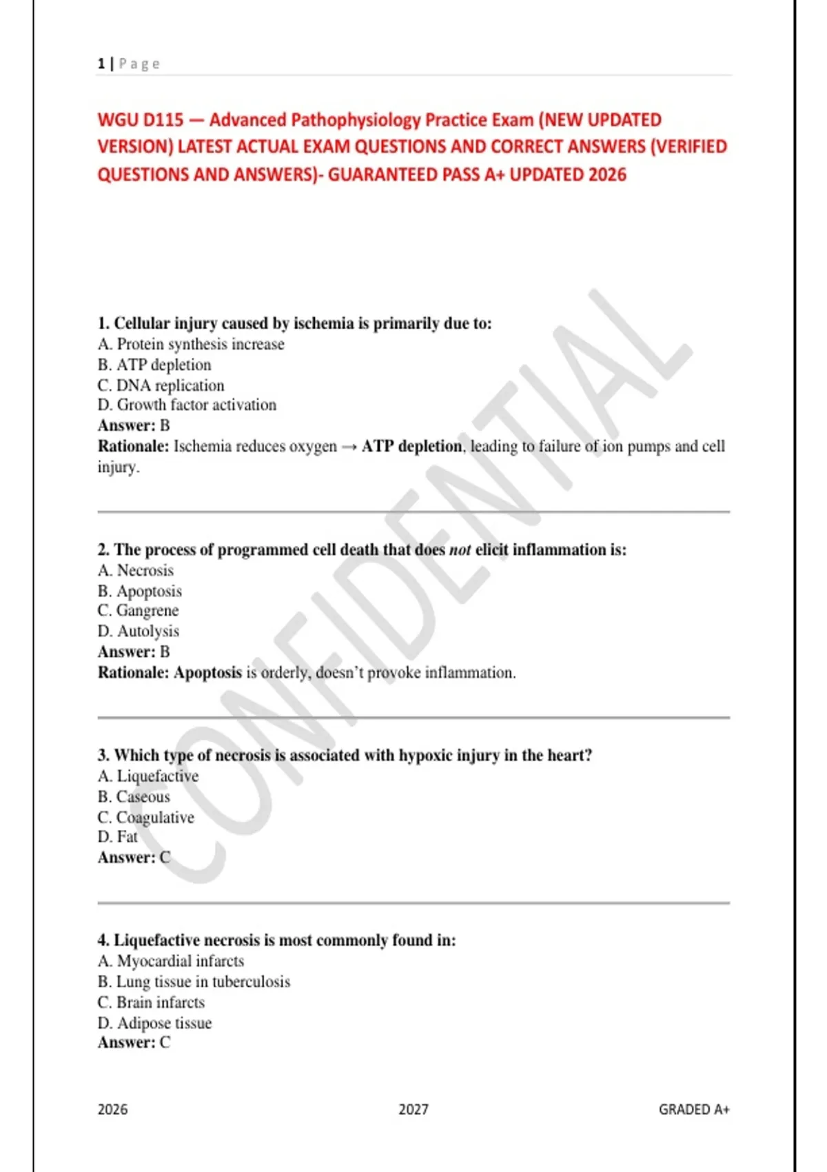 WGU D115 — Advanced Pathophysiology Practice Exam (NEW UPDATED