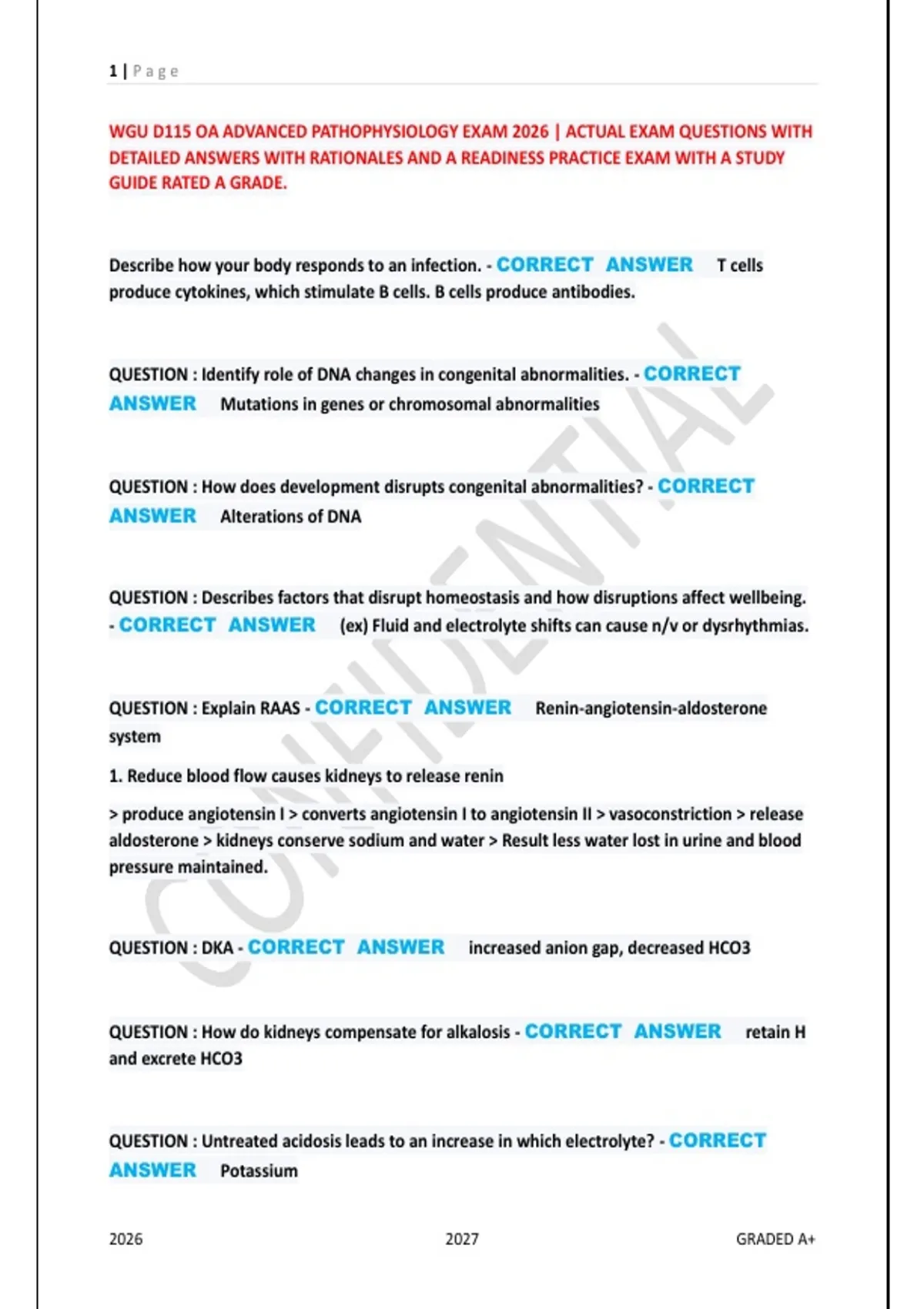 WGU D115 OA ADVANCED PATHOPHYSIOLOGY EXAM 2026 | ACTUAL EXAM QUESTIONS WITH