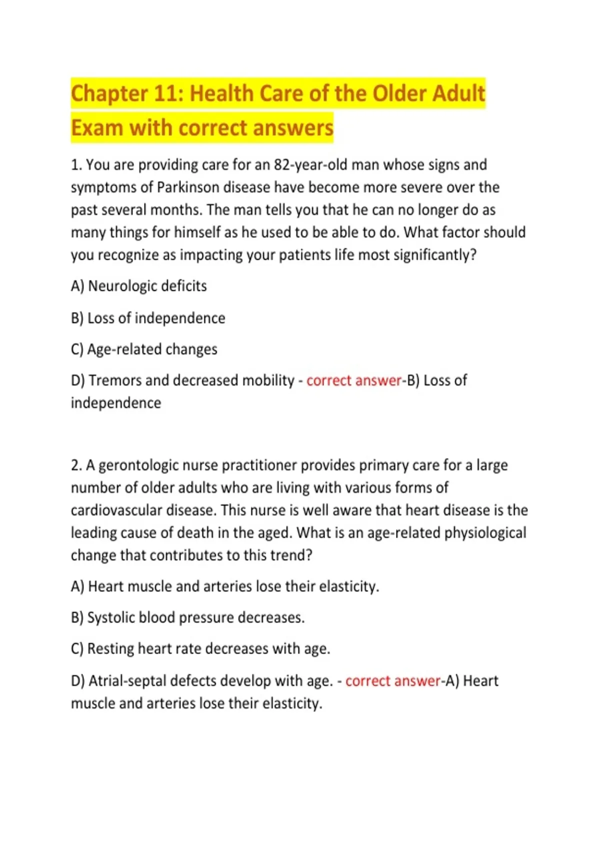 Exam with correct answers