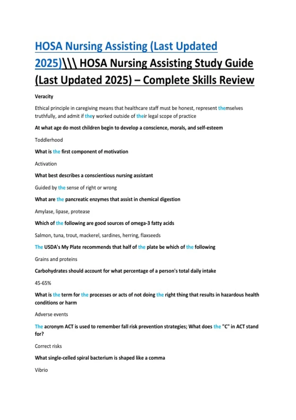 HOSA Nursing Assisting (Last Updated