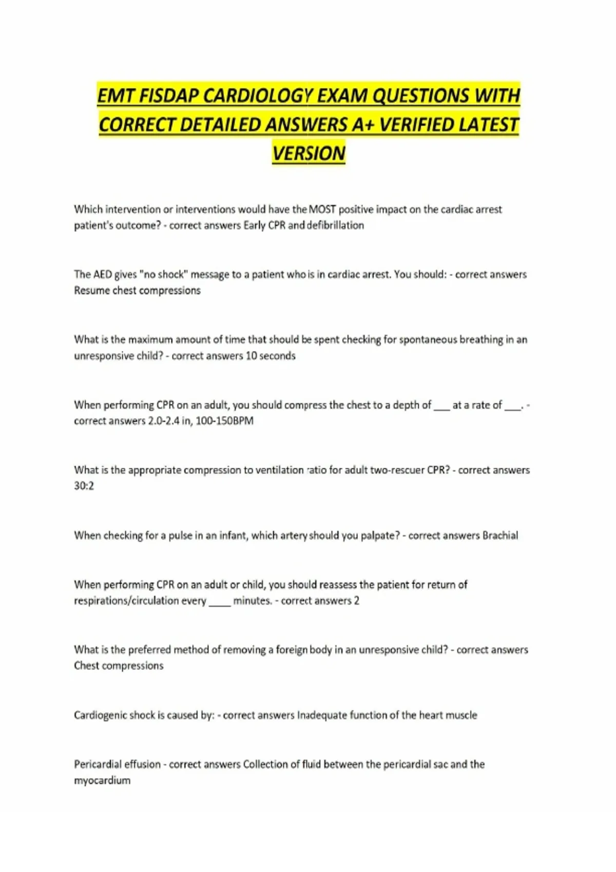 EMT FISDAP CARDIOLOGY EXAM QUESTIONS WITH CORRECT DETAILED ANSWERS A+ VERIFIED LATEST VERSIONEMT FISDAP CARDIOLOGY EXAM QUESTIONS WITH CORRECT DETAILED ANSWERS A+ VERIFIED LATEST VERSIONEMT FISDAP CARDIOLOGY EXAM QUESTIONS WITH CORRECT DETAILED ANSWERS A+ VERIFIED LATEST VERSION