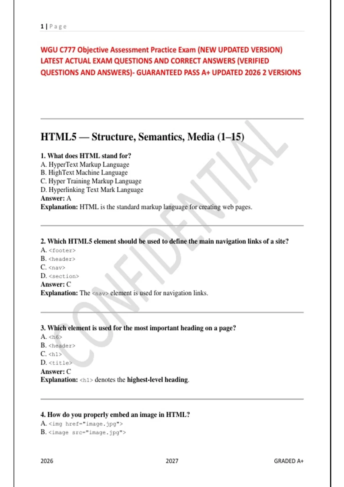 WGU C777 Objective Assessment Practice Exam (NEW UPDATED VERSION)