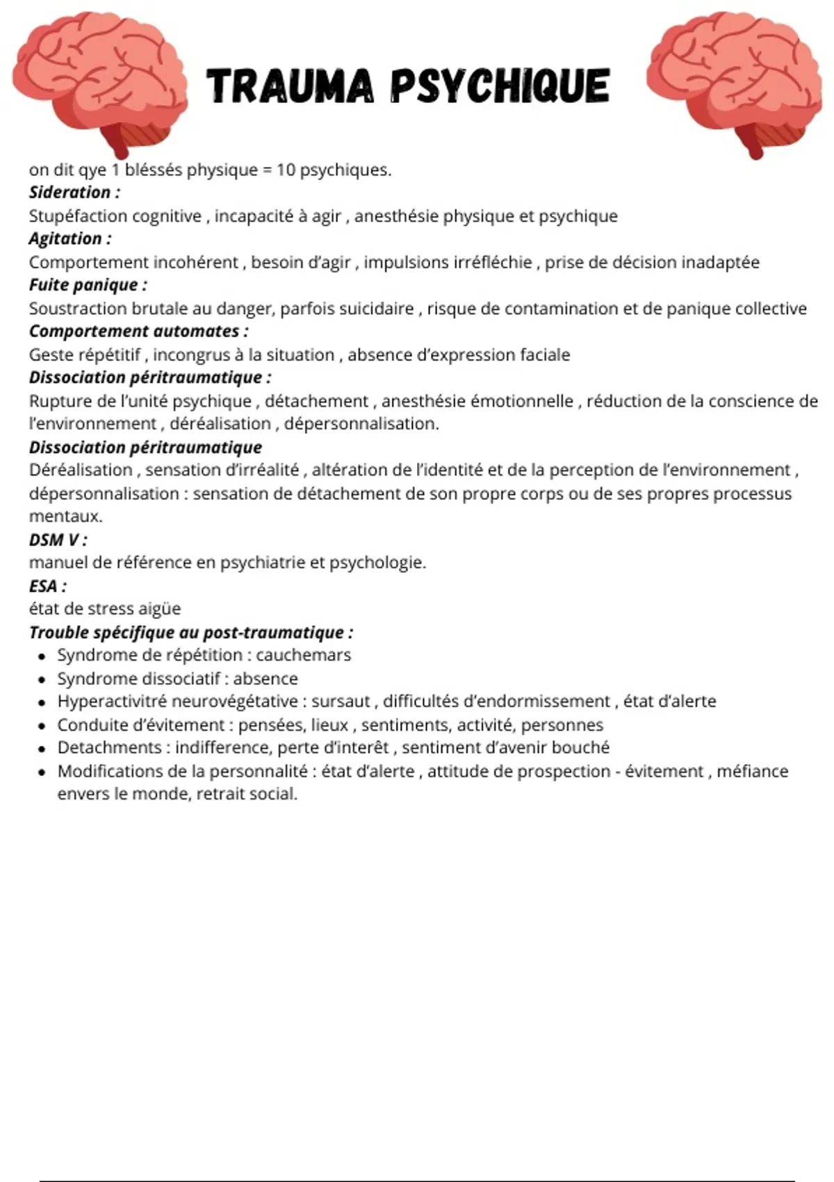 Trouble spécifique au post-traumatique :
