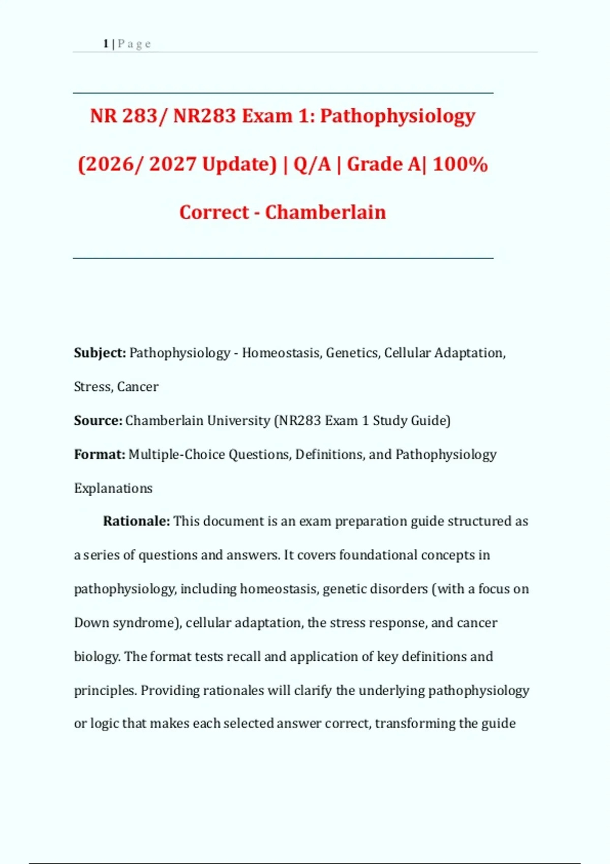 NR 283/ NR283 Exam 1: Pathophysiology