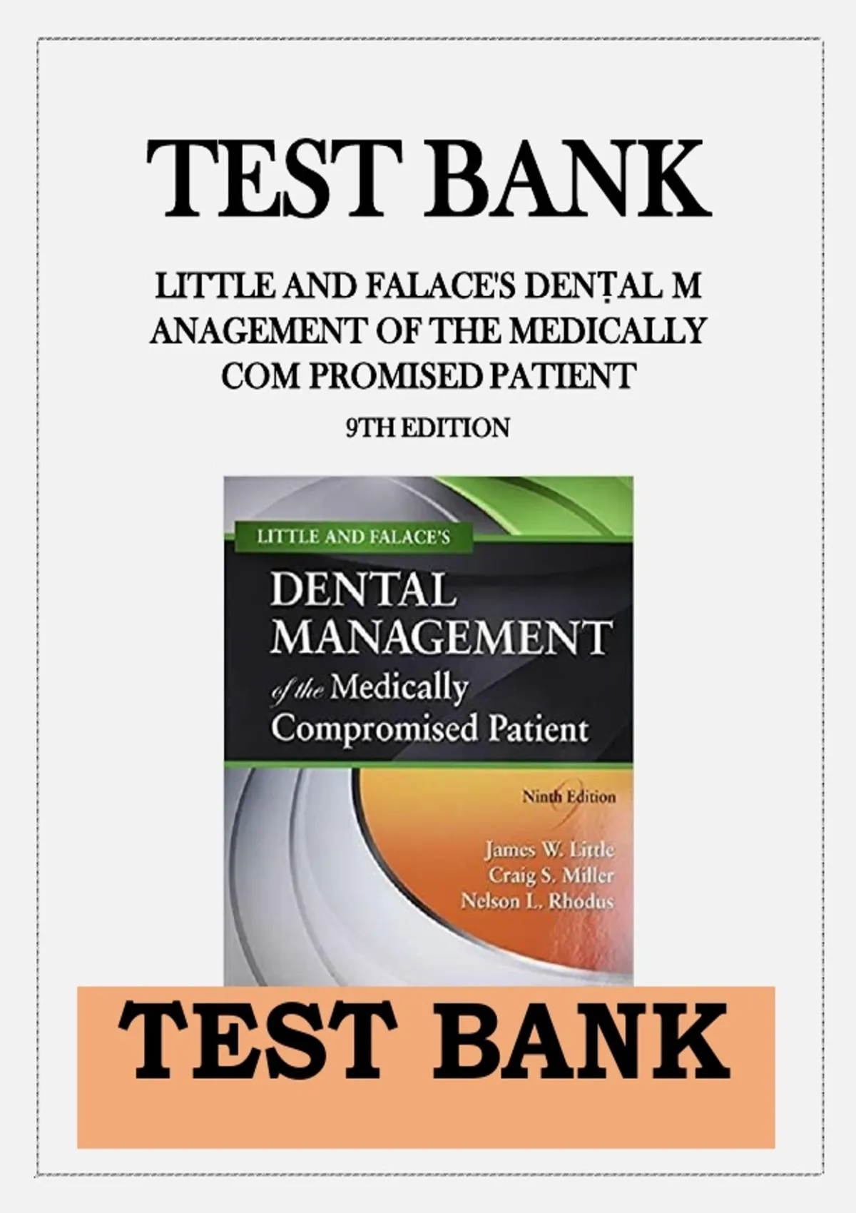 This Little and Falace’s Dental Management of the Medically Compromised Patient 9th Edition Test Bank contains comprehensive exam-style questions with verified answers covering all chapters. It is fully aligned with the 9th edition textbook by James W. Little, Craig S. Miller, and Nelson L. Rhodus and designed to help dental students and clinicians excel in exams, quizzes, OSCEs, and board preparation.Instant download after purchase