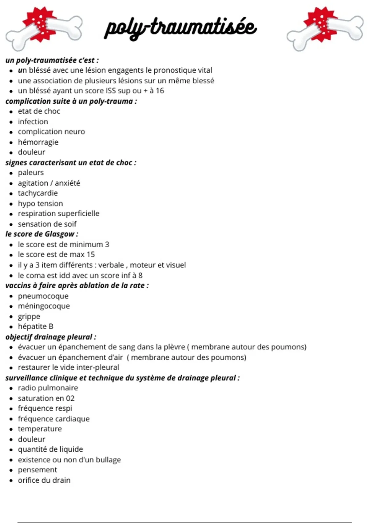 fiche complète poly-traumatisme sur l'UE 2.04 S1