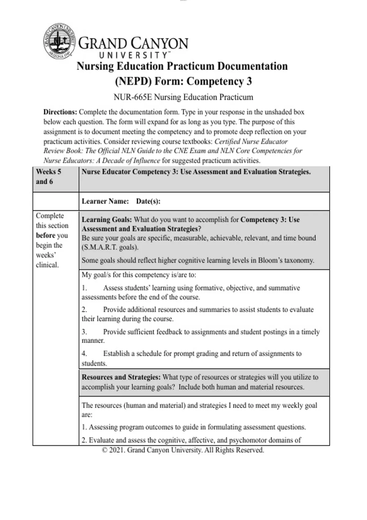 Weeks 5 Nurse Educator Competency 3: Use Assessment and Evaluation Strategies.