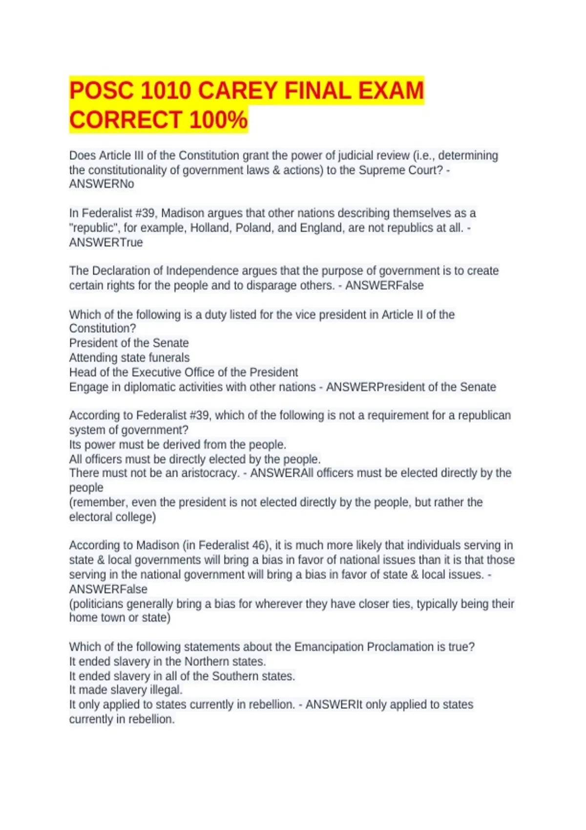 POSC 1010 CAREY FINAL EXAM CORRECT 100%