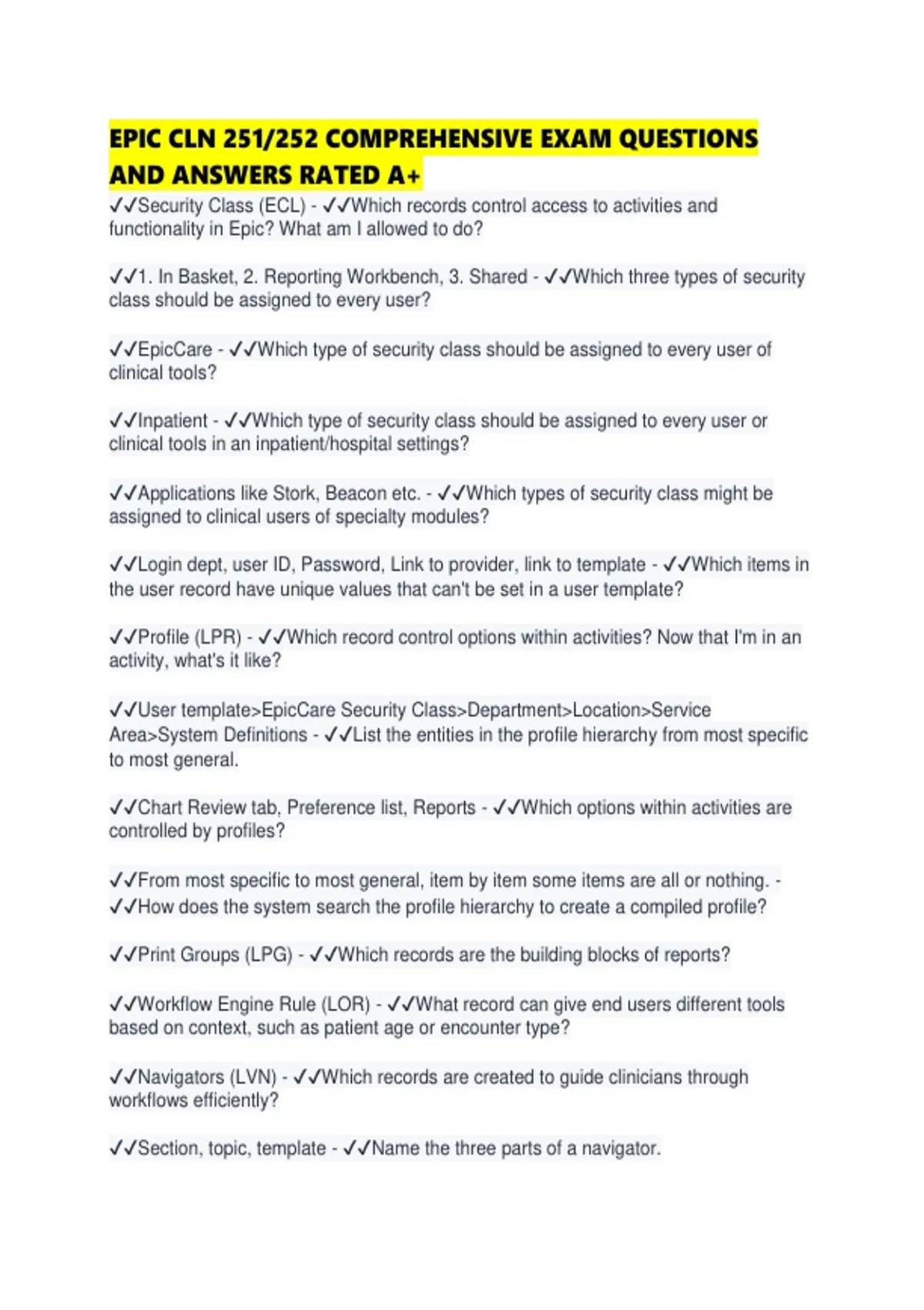 ✔✔EpicCare - ✔✔Which type of security class should be assigned to every user of