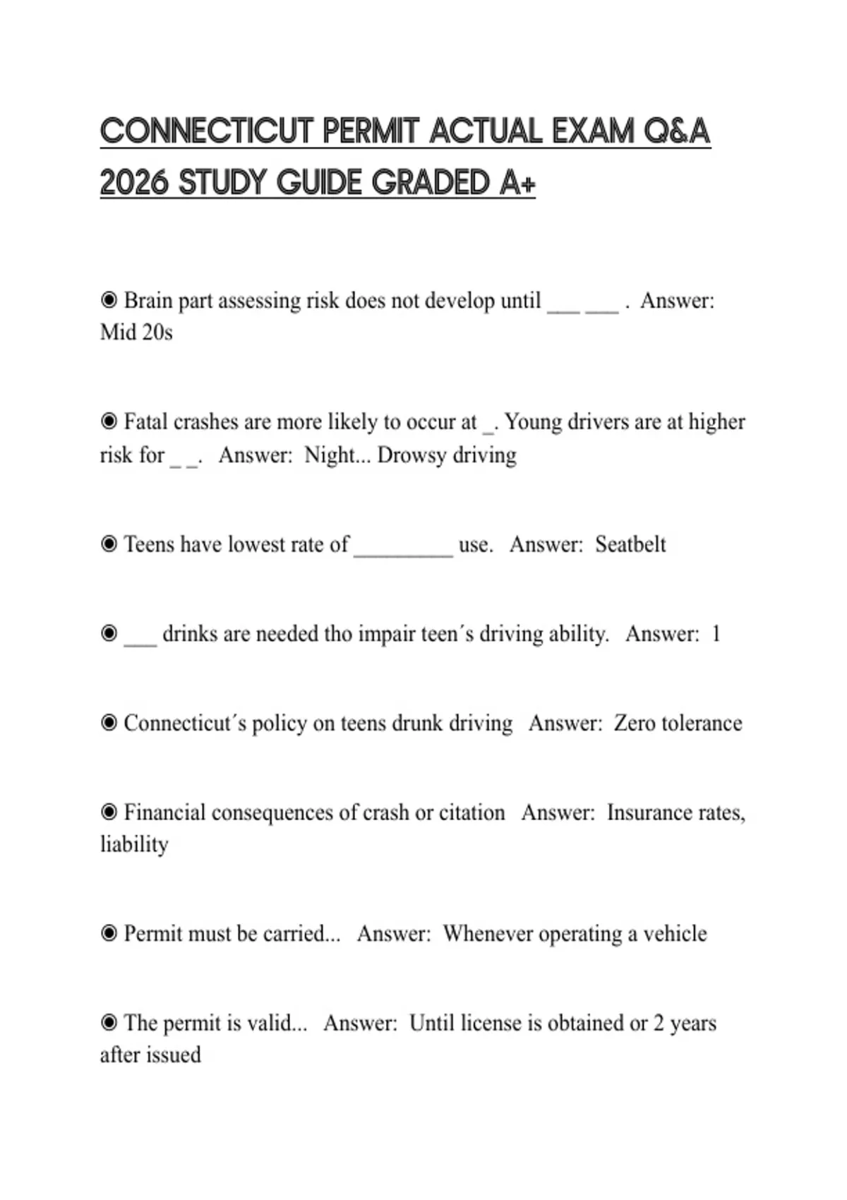CONNECTICUT PERMIT ACTUAL EXAM Q&A