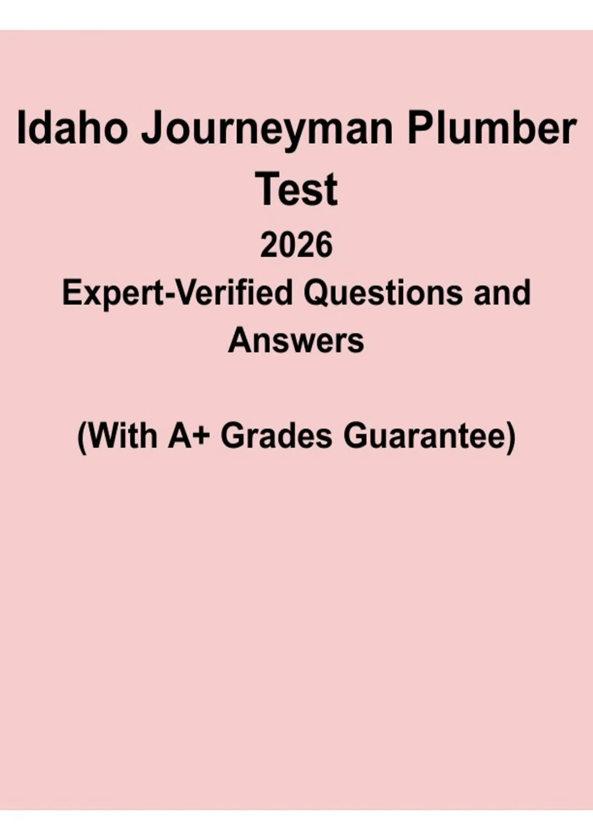 , Idaho Journeyman Plumber Test