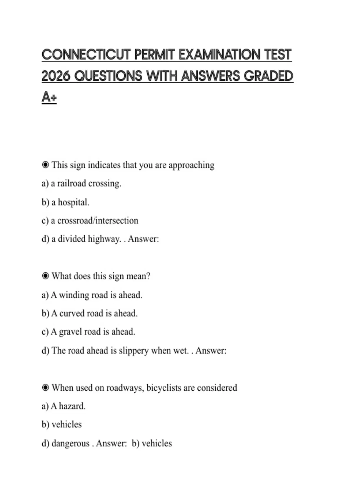 CONNECTICUT PERMIT EXAMINATION TEST