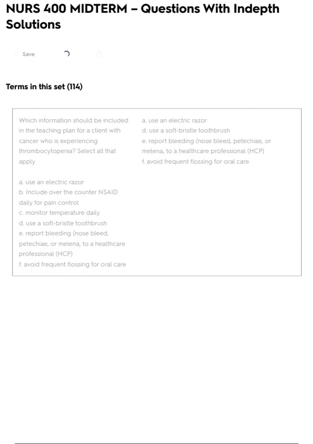 cancer who is experiencing e. report bleeding (nose bleed, petechiae, or
