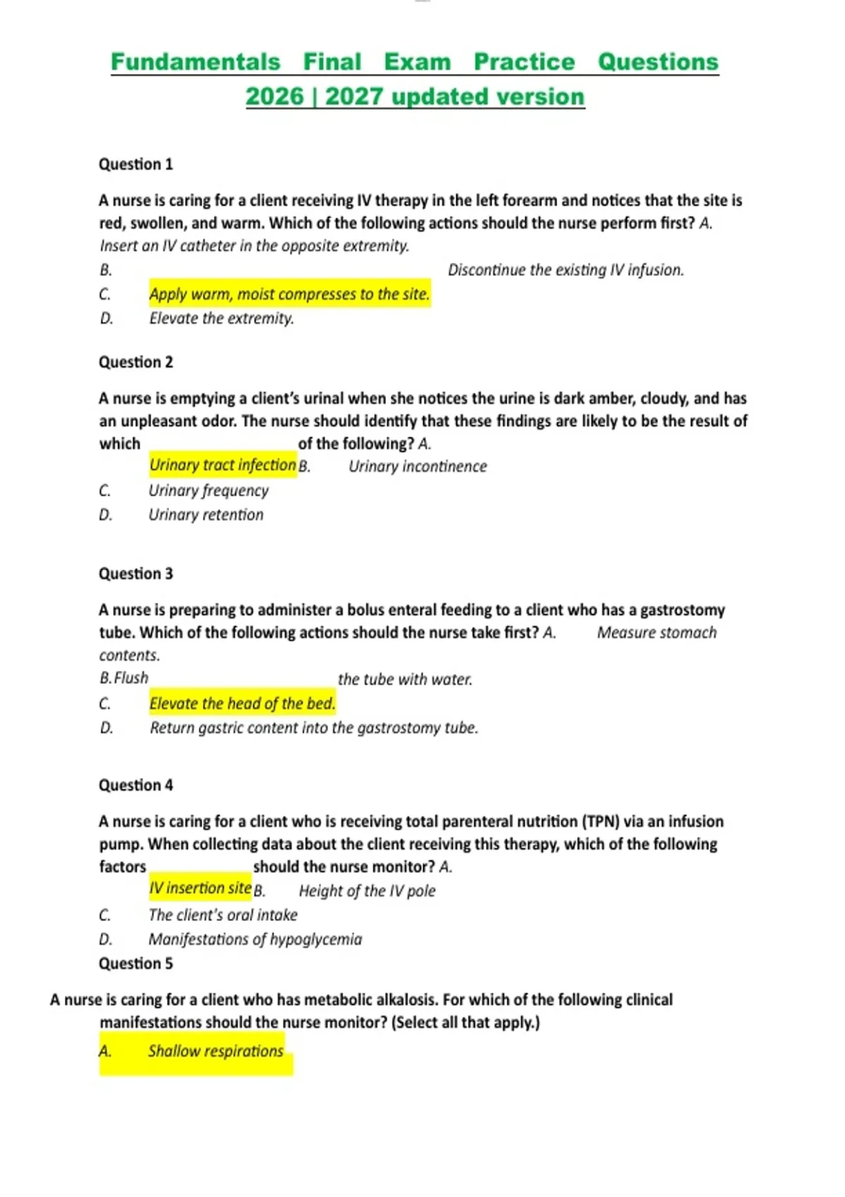 Fundamentals Final Exam Practice Questions