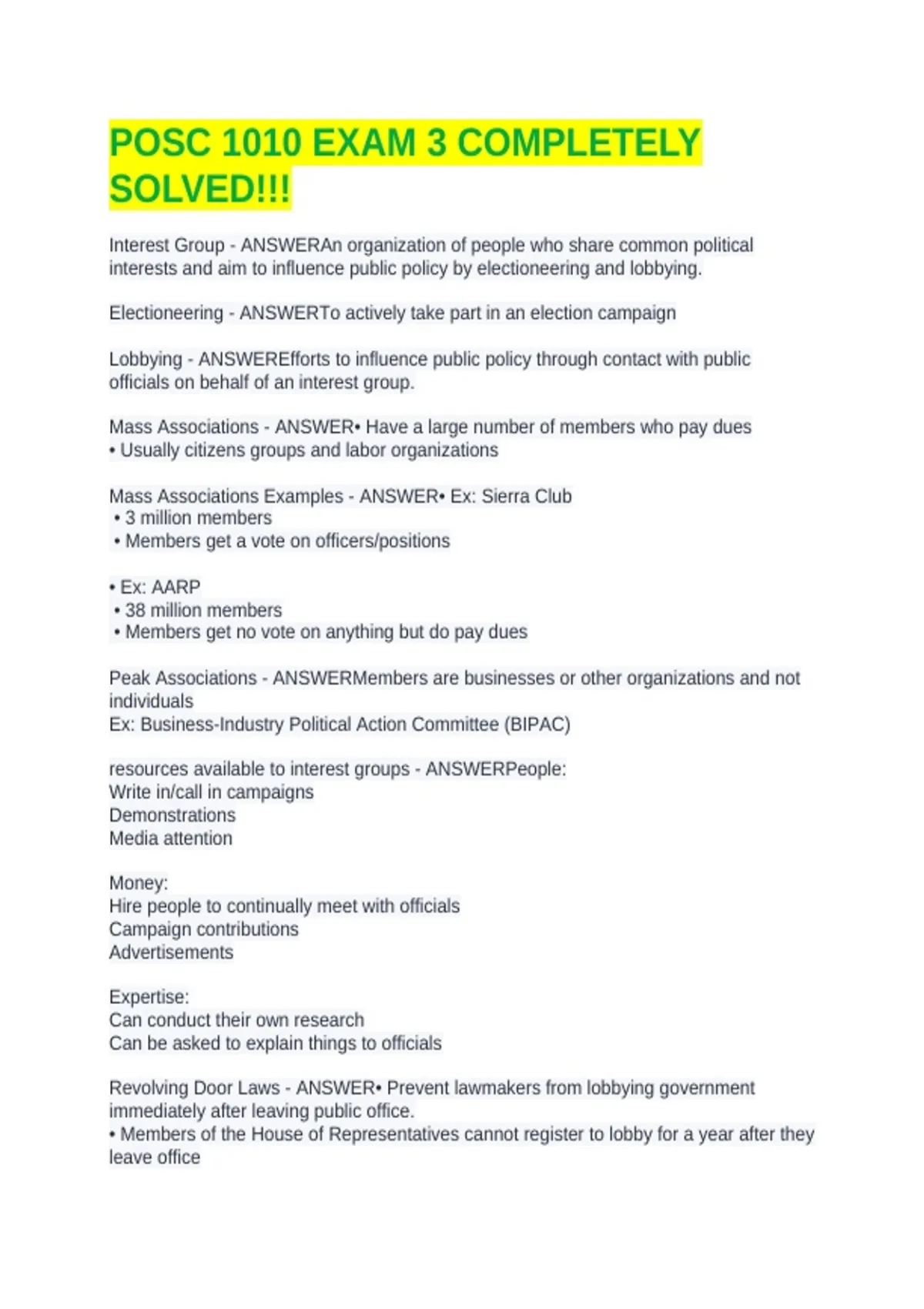 POSC 1010 EXAM 3 COMPLETELY SOLVED!!!
