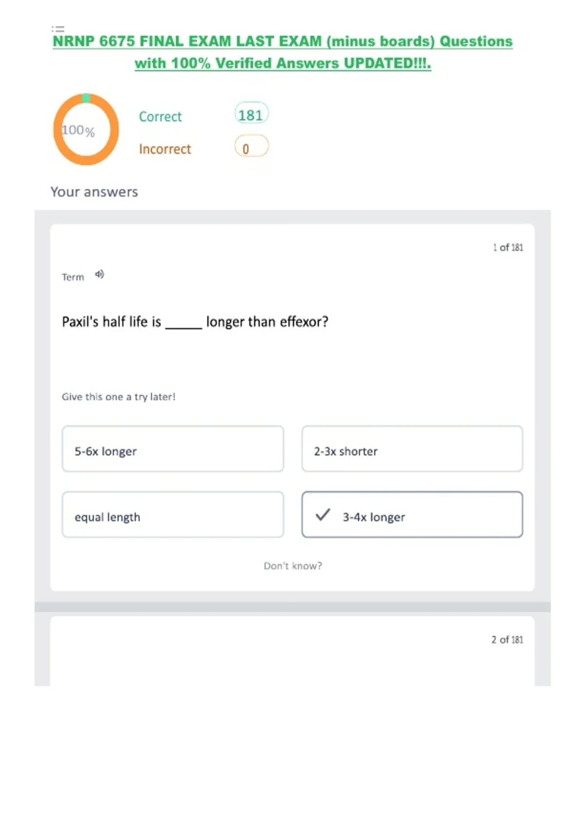 NRNP 6675 FINAL EXAM LAST EXAM (minus boards) Questions with 100% Verified Answers UPDATED!!!.