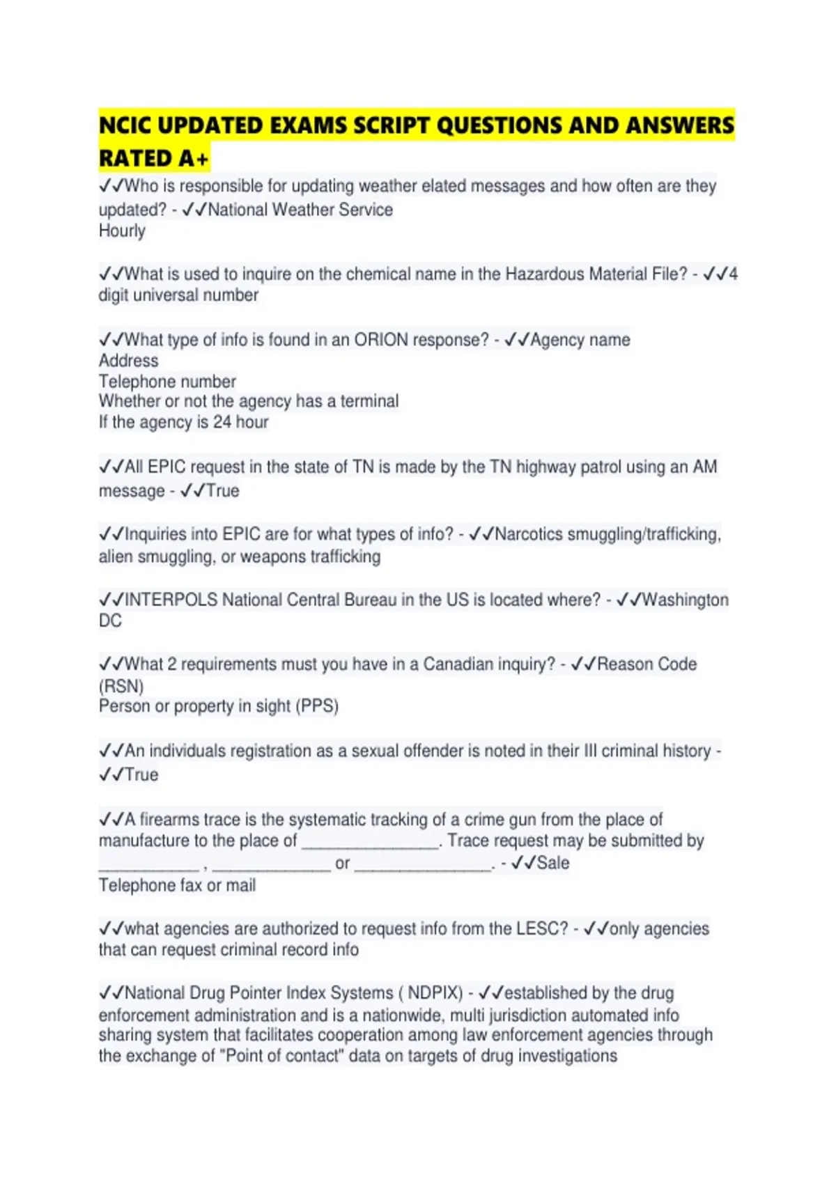 NCIC UPDATED EXAMS SCRIPT QUESTIONS AND ANSWERS RATED A+