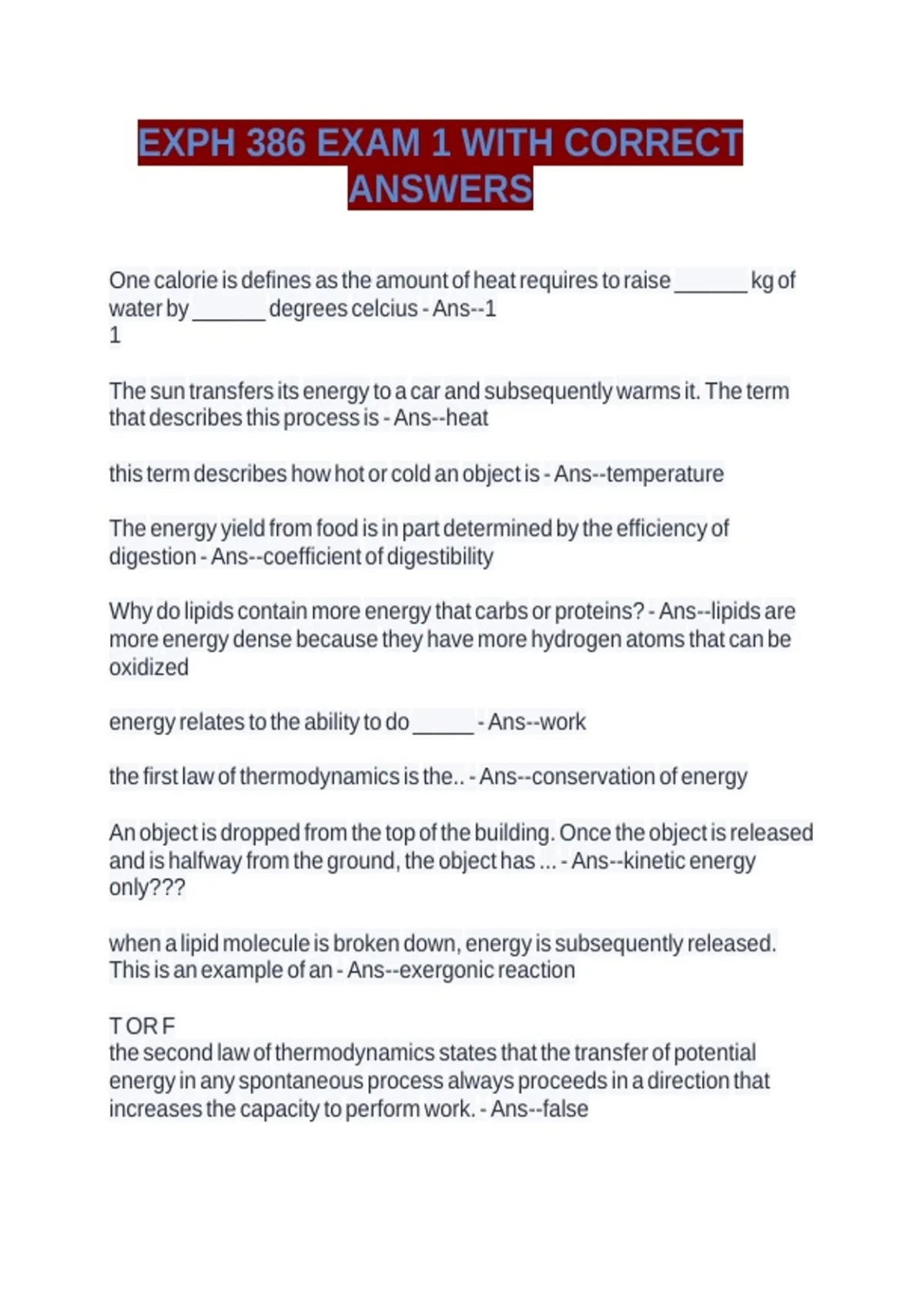 EXPH 386 EXAM 1 WITH CORRECT ANSWERS