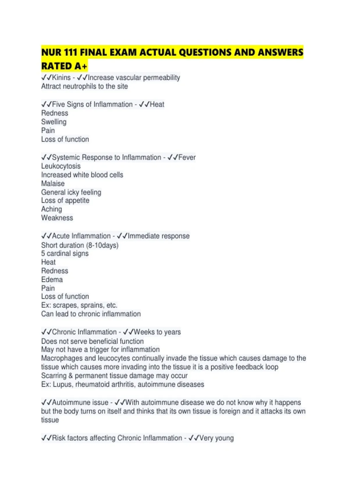 ✔✔Systemic Assessment Findings for Inflammation and Infections - ✔✔Temp will