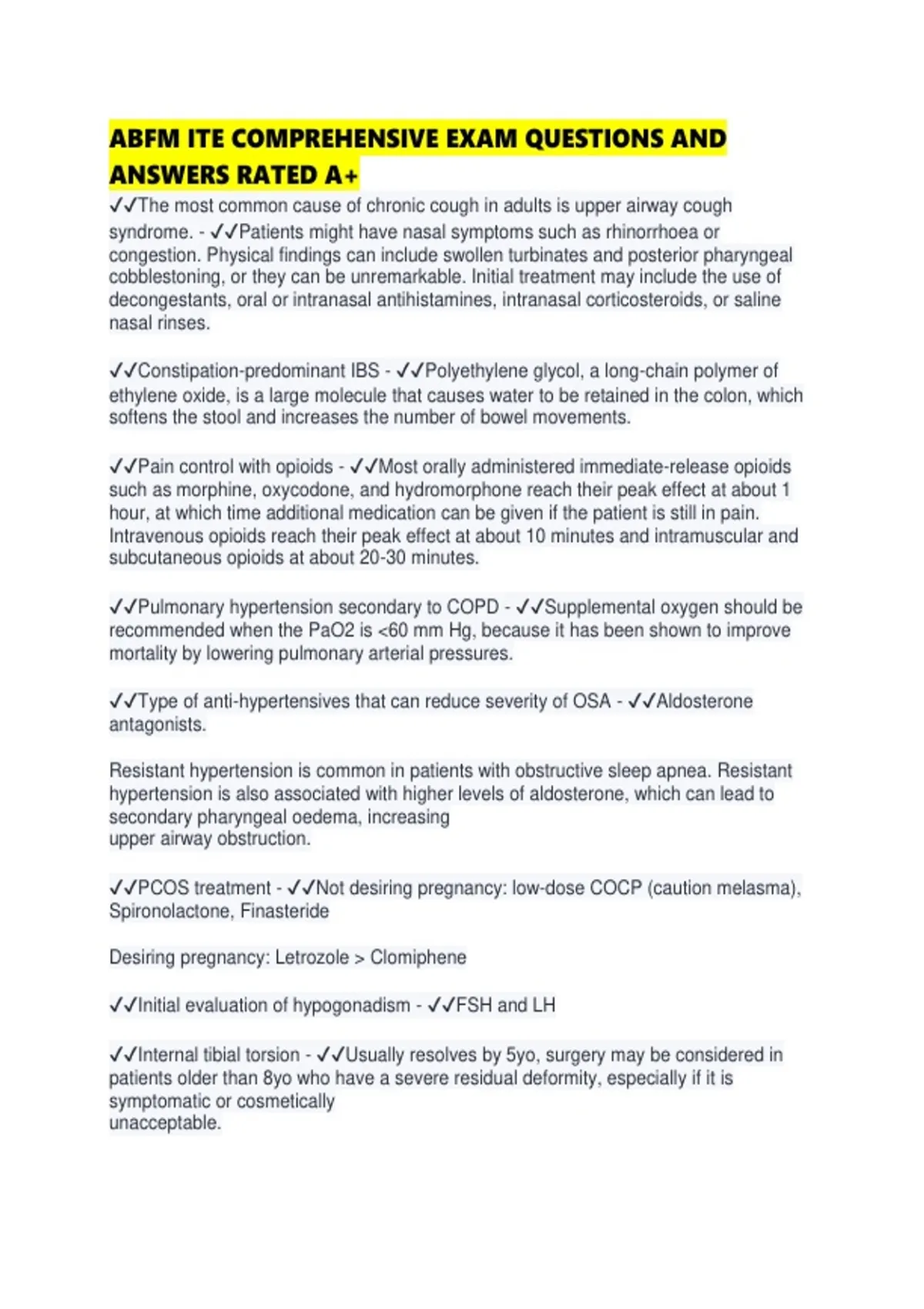 ABFM ITE COMPREHENSIVE EXAM QUESTIONS AND ANSWERS RATED A+