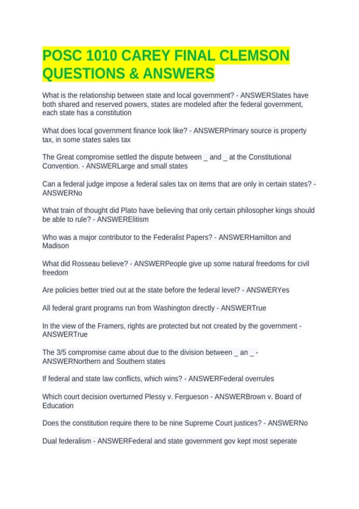 What is the relationship between state and local government? - ANSWERStates have both shared and reserved powers, states are modeled after the federal government, each state has a constitution What does local government finance look like? - ANSWERPrimary source is property tax, in some states sales tax The Great compromise settled the dispute between _ and _ at the Constitutional Convention. - ANSWERLarge and small states
