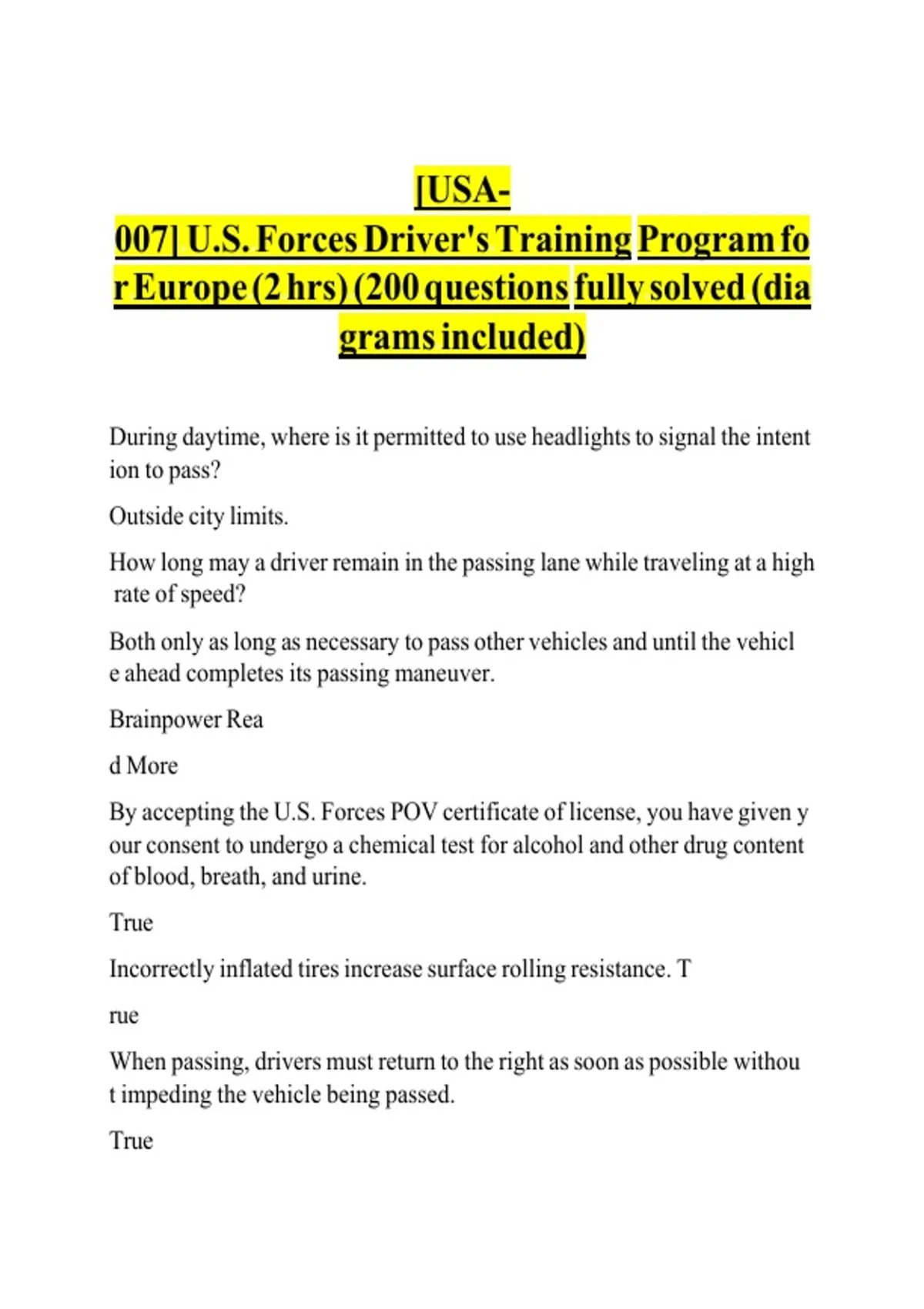 007] U.S. Forces Driver's Training Program fo