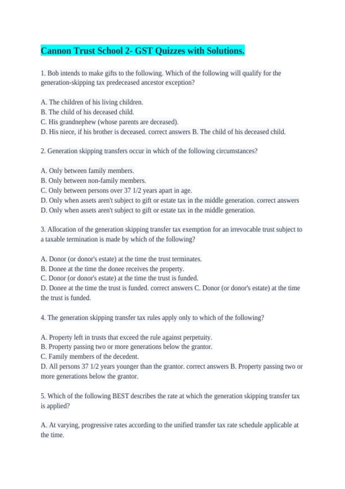 D. Grantor retained annuity trust correct answers B. Generation-skipping trust