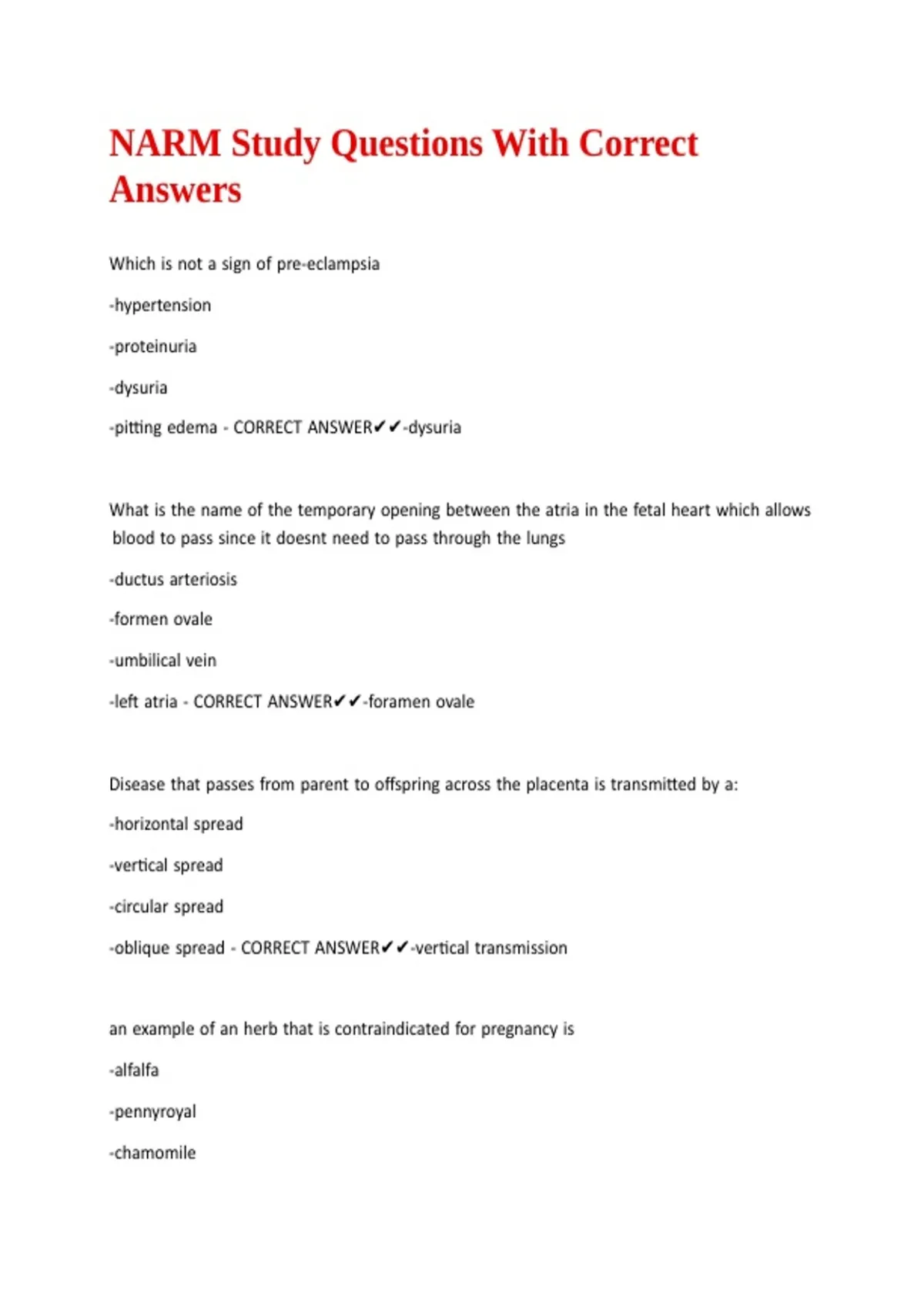 NARM Study Questions With Correct