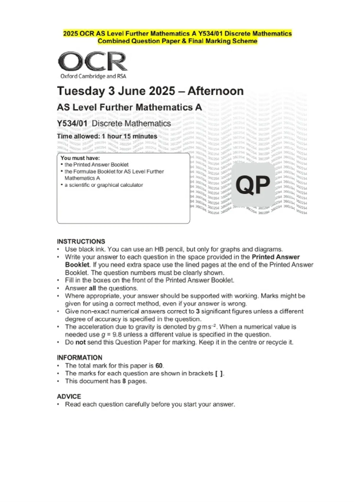 2025 ocr as level further mathematics a y53401