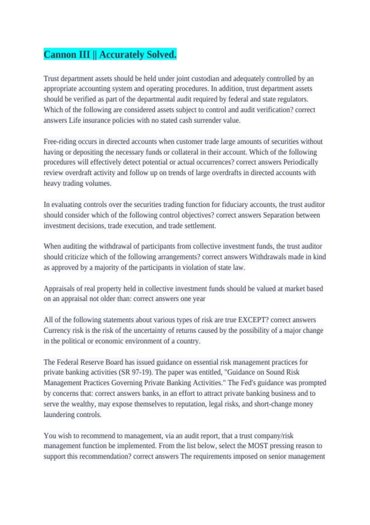 by concerns that: correct answers banks, in an effort to attract private banking business and to