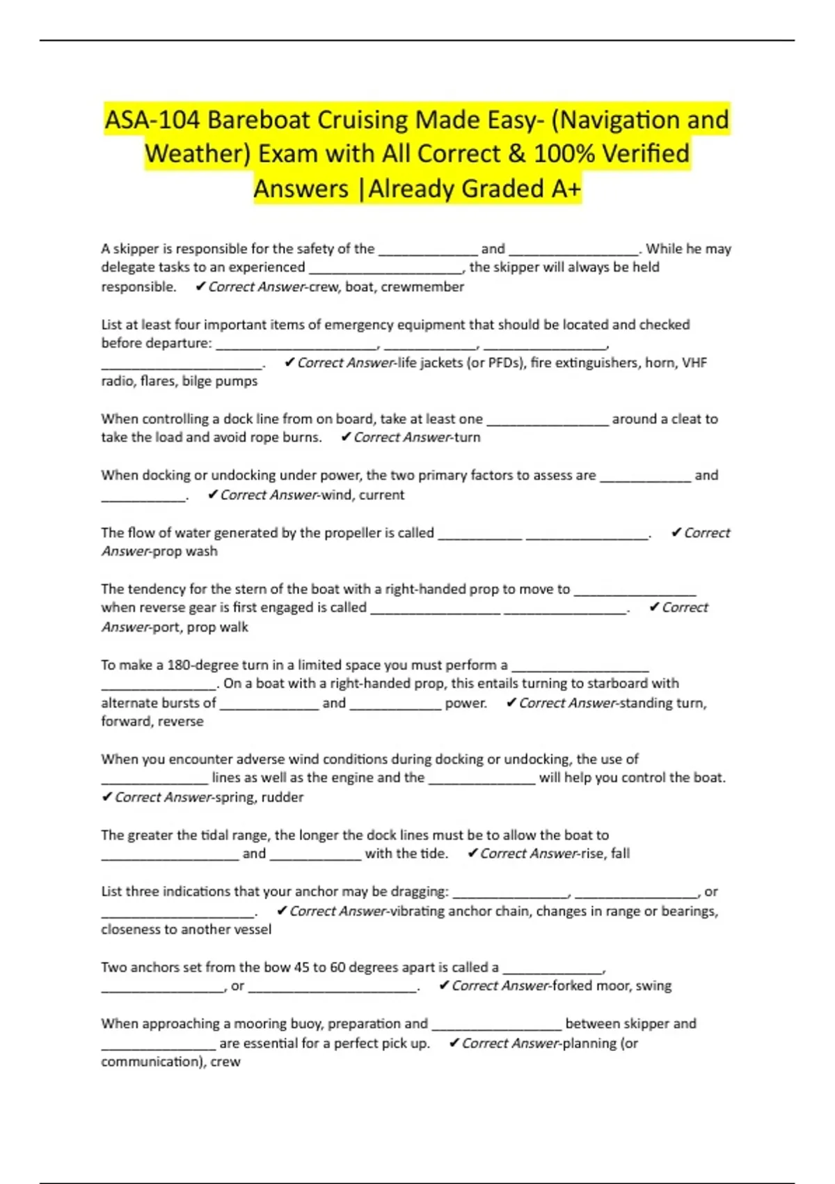 responsible. ✔Correct Answer-crew, boat, crewmember