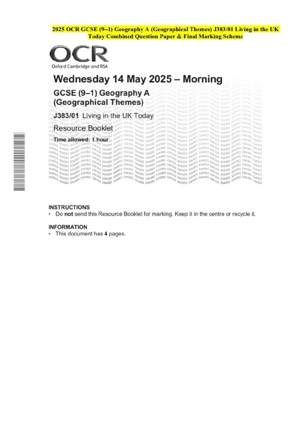 2025 OCR GCSE (9–1) Geography A (Geographical Themes) J383/01 Living in the UK Today Question Paper and Final Evaluation Scheme