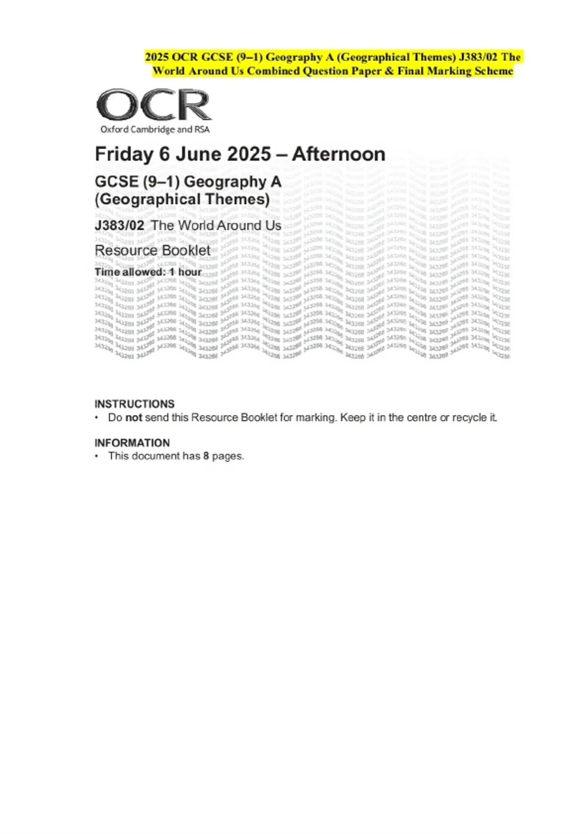 2025 OCR GCSE (9–1) Geography A (Geographical Themes) J383/02 The World Around Us Question Paper and Final Evaluation Scheme